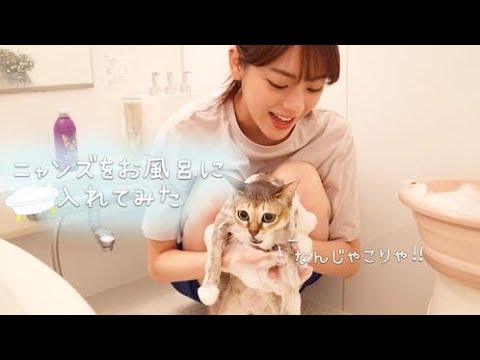 にゃんずをお風呂に入れたらびしょ濡れになってしまいました…。