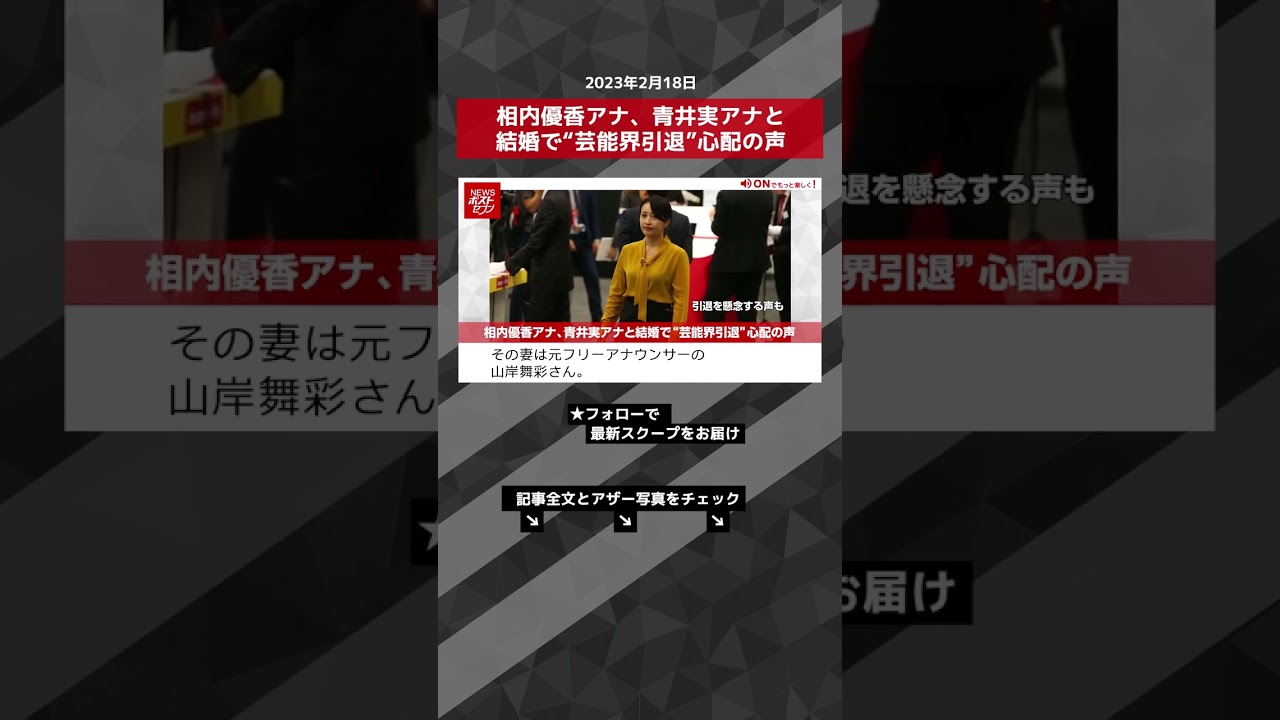 相内優香アナ、青井実アナと結婚で“芸能界引退”心配の声 NEWSポストセブン【ショート動画】 #shorts