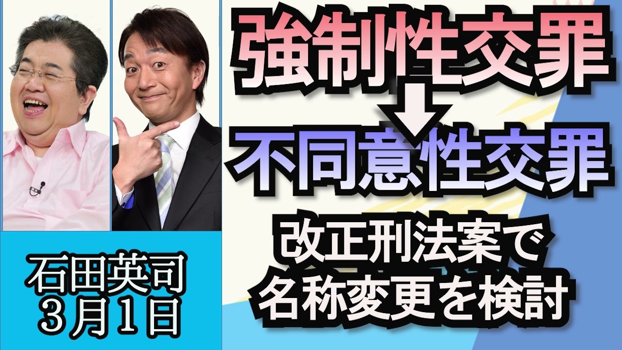 石田英司「刑法改正案”強制性交罪”を”不同意性交罪”へ名称変更検討」「日本の新たな宇宙飛行士候補、14年ぶりに誕生」「マイナカード申請期限、アクセス集中で1日延長」3月1日