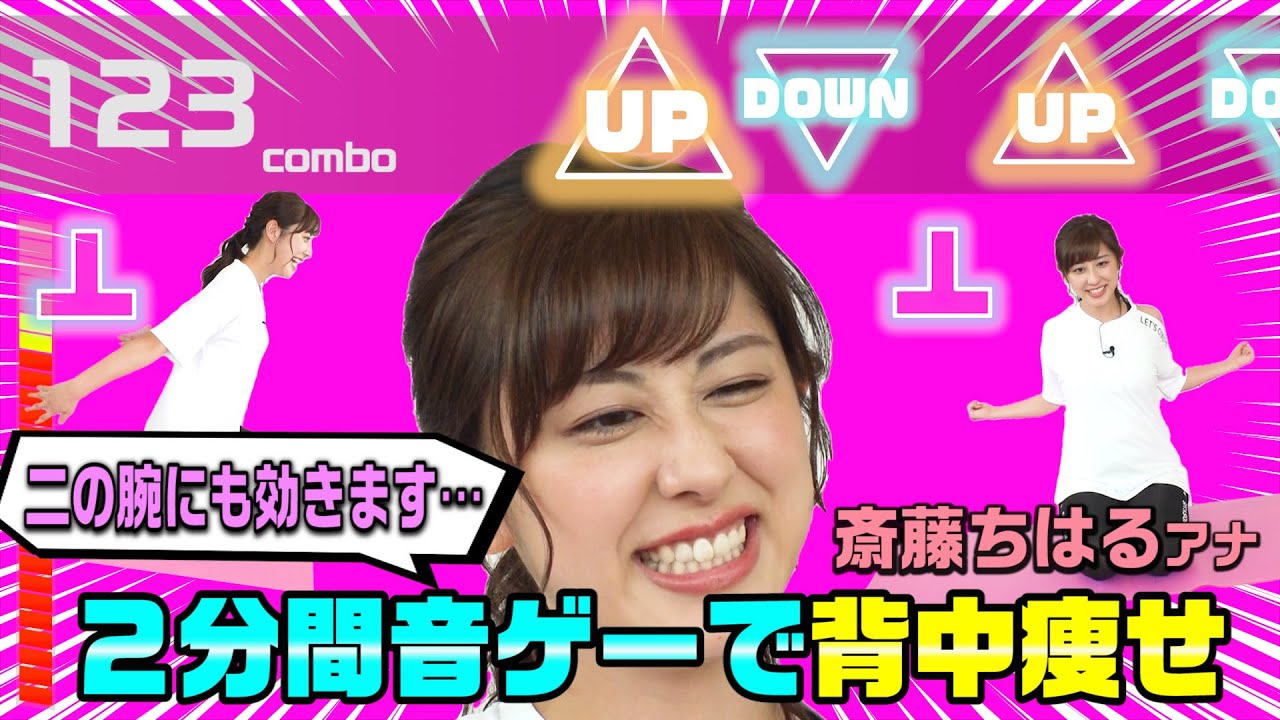 【音ゲーで背中痩せ】2分間の超高速フィットネス で斎藤アナの体力も限界に…!