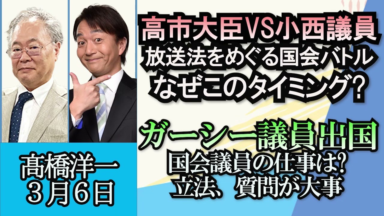 高橋洋一「高市大臣と小西議員、放送法にまつわる総務省の内部文書で大バトル」「米下院委でTikTok利用禁止法案が可決」「ガーシー議員がUAEを出国“陳謝”は8日に予定」3月6日