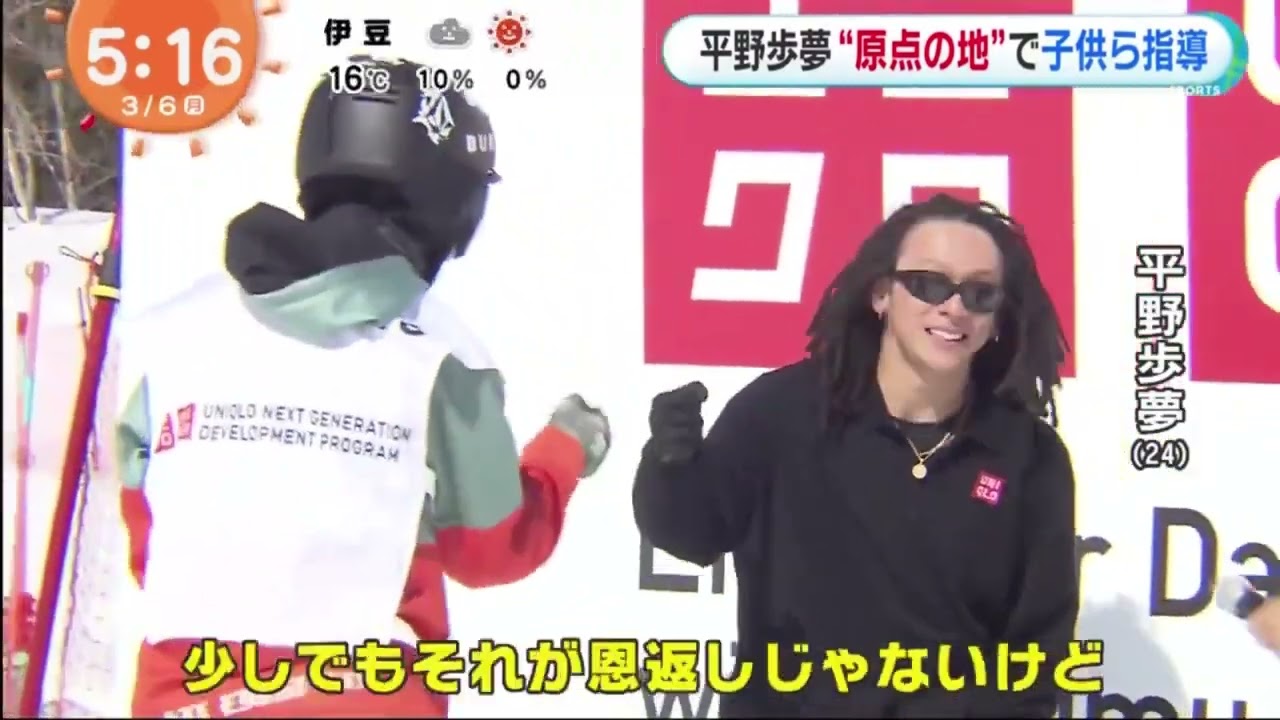 平野歩夢 “原点の地”で子供ら指導│めざましテレビ 2023年03月06日