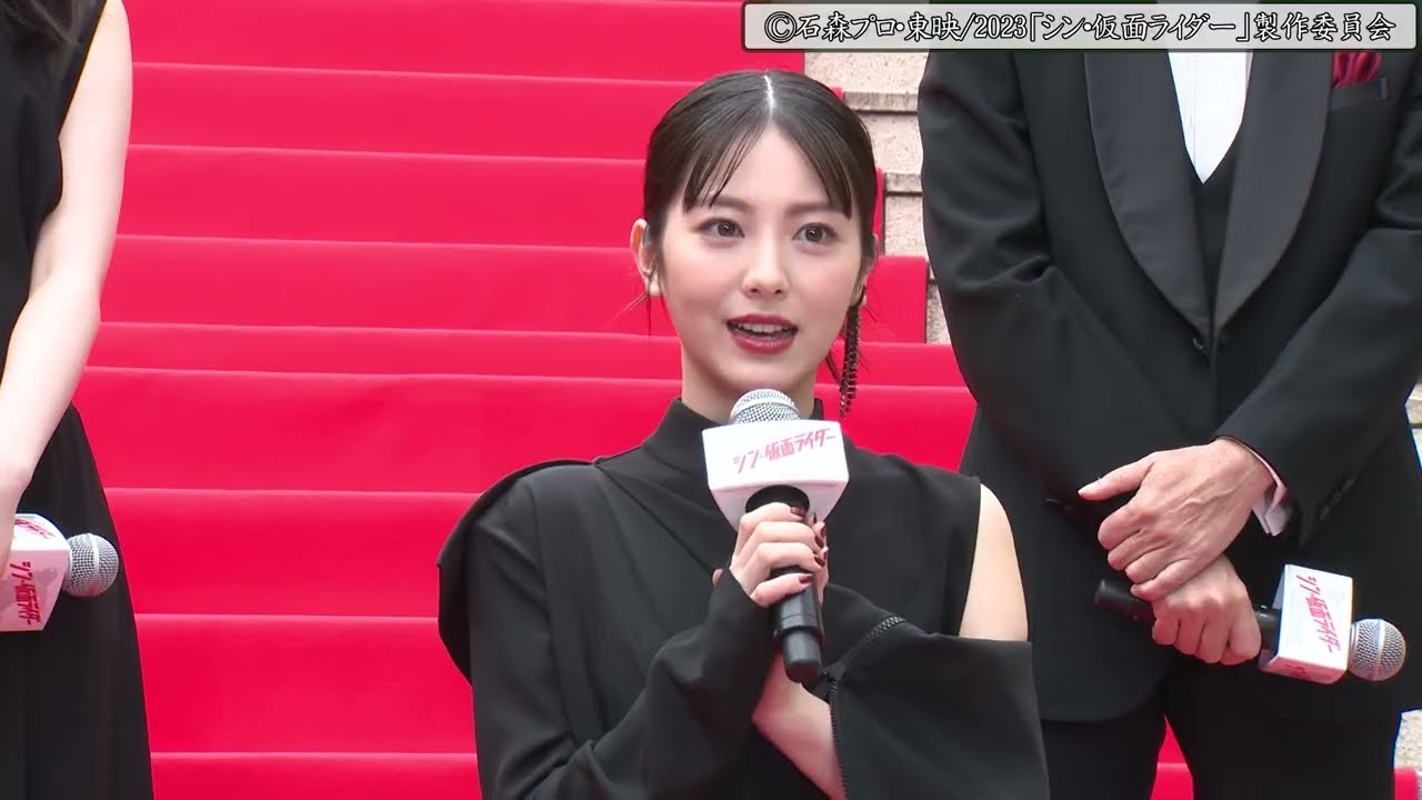 俳優の浜辺美波が12日、東京・TOHOシネマズ六本木ヒルズで行われた映画『シン・仮面ライダー』(庵野秀明監督)のプレミア上映会に出席。報道陣の取材にも丁寧に対応し、“仮面ライダー愛”を語った。