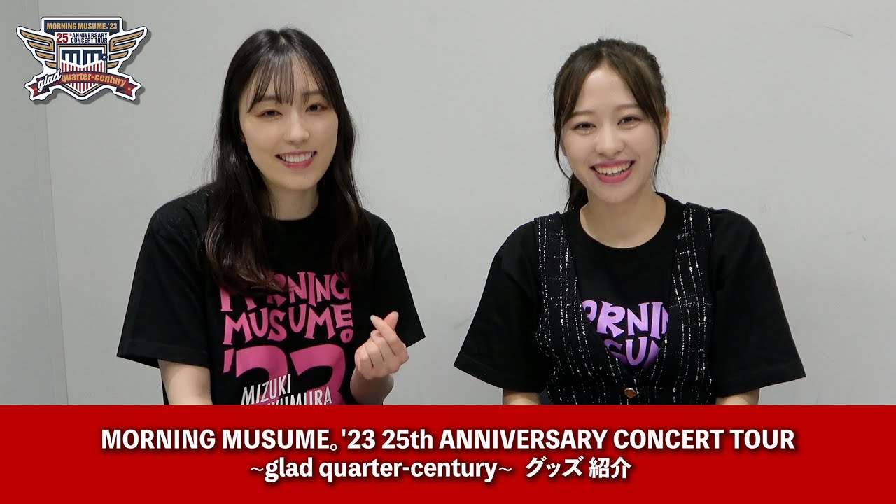 2023.3.19から始まる「モーニング娘。’23 25th ANNIVERSARY CONCERT TOUR ~glad quarter-century~」のグッズをモーニング娘。’23の譜久村聖と小田さくらの2人がご紹介