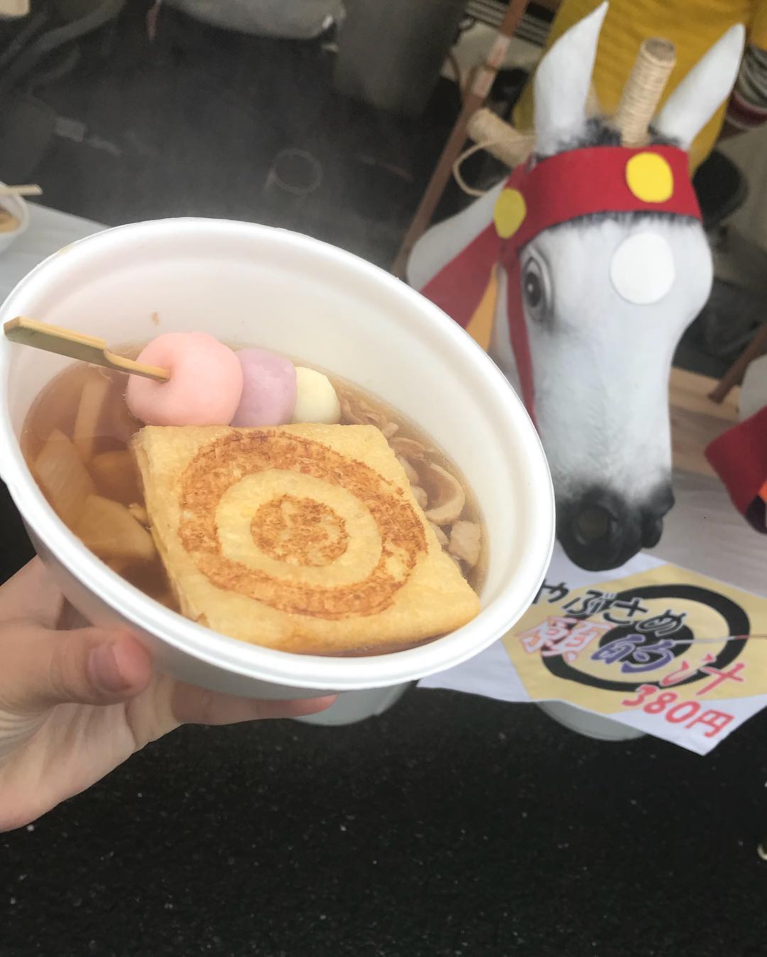 毛呂山名物「願的汁」 あったまるよーいっ ゆずが入ってて、 油揚げが的になって お団子が矢みたいで 流鏑馬をイメージ(*´ω`*) #毛呂山町 #毛呂山町観光大使 #レインボーまつり #川越 #ai_negishi#根岸愛Ai NegishiNegishi Aiレインボーまつり川越毛呂山町毛呂山町観光大使