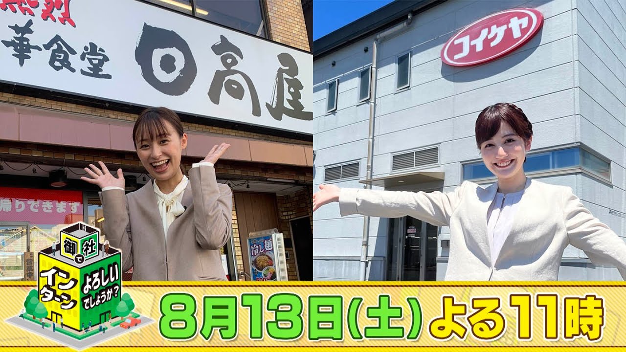 「御社でインターンよろしいでしょうか?」8/13(土)は夜11時放送!反響の大きかった日高屋と湖池屋に再び訪れ、追加インターン!日高屋では、就活世代のタレント・鈴木美羽が野菜たっぷりたんめんの調理に挑戦。湖池屋では、同じく就活世代の中川梨花がポテトチップスのり塩を製造する自社工場に潜入!