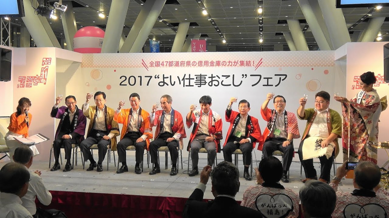 2017/08/22~08/23まで城南信用金庫の主催により東京国際フォーラムで行われている「東北・熊本など被災地の復興応援」「地方創生」をメインテーマとした『2017“よい仕事おこし”フェア』のイベントステージでの「興こし酒プロジェクト」「ふくしま産業賞 PRイベント」「福島県会津若松市観光PRステージ ~東山温泉芸妓さんによる踊り~」の様子です。