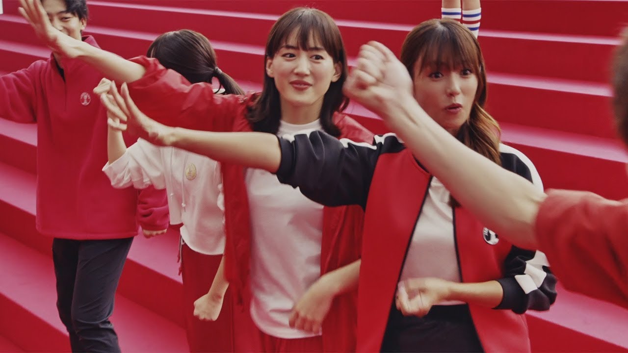 CMでは、「グリコ」「チヨコレイト」「パイナツプル」のフレーズでおなじみの「じゃんけんグリコ」をスポーツと捉えて、12人が真剣勝負。真っ赤な大階段を舞台に、綾瀬さん率いる紅組と、妻夫木さん率いる白組に別れ、男女対抗戦を繰り広げている。大貫勇輔さん、足立梨花さん、佐野ひなこさん、井上祐貴さん、関水渚さんも参加している。