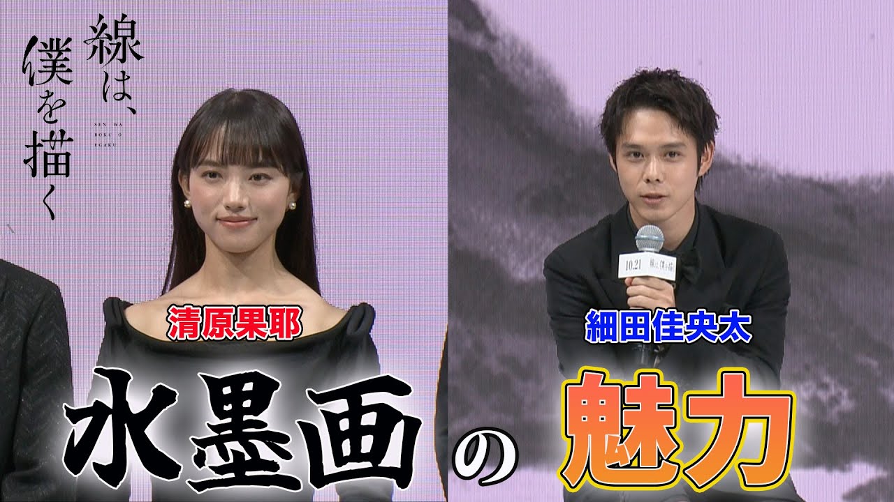 清原果耶、細田佳央太が水墨画に挑戦!映画「線は、僕を描く」完成報告会