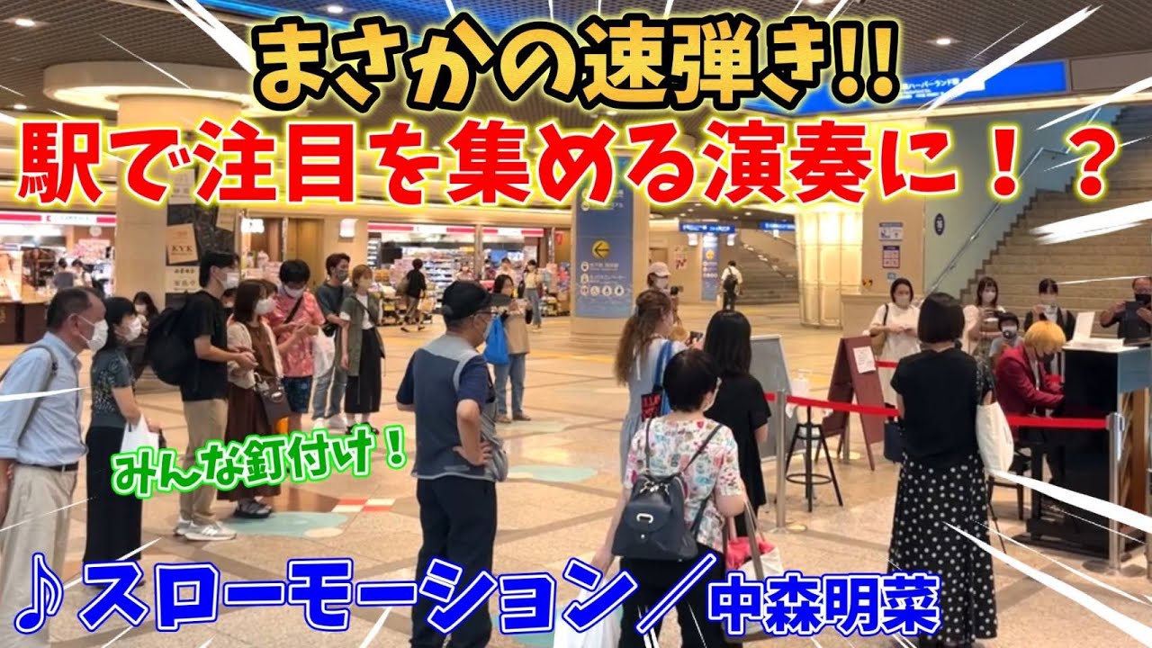 【ストリートピアノ】『スローモーション』中森明菜 まさかの速弾きで駅で注目を集める演奏に!?〔デュオ神戸ストリートピアノ〕