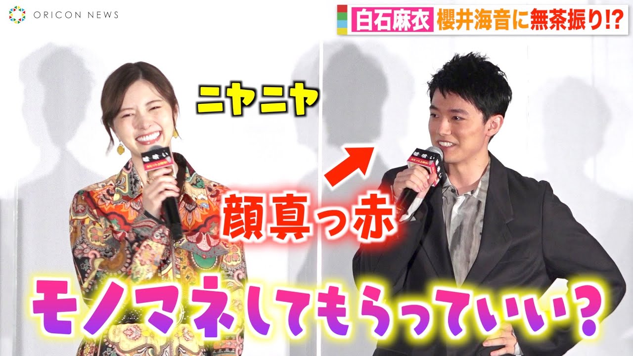 白石麻衣、櫻井海音にモノマネ無茶振りで会場パニック!? 初々しい反応に思わずニヤニヤ 映画『嘘喰い』公開記念舞台挨拶