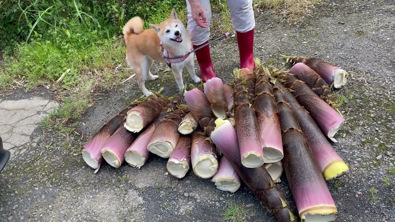 「もも、金魚のフンになる」の巻 Digging up bamboo shoots!