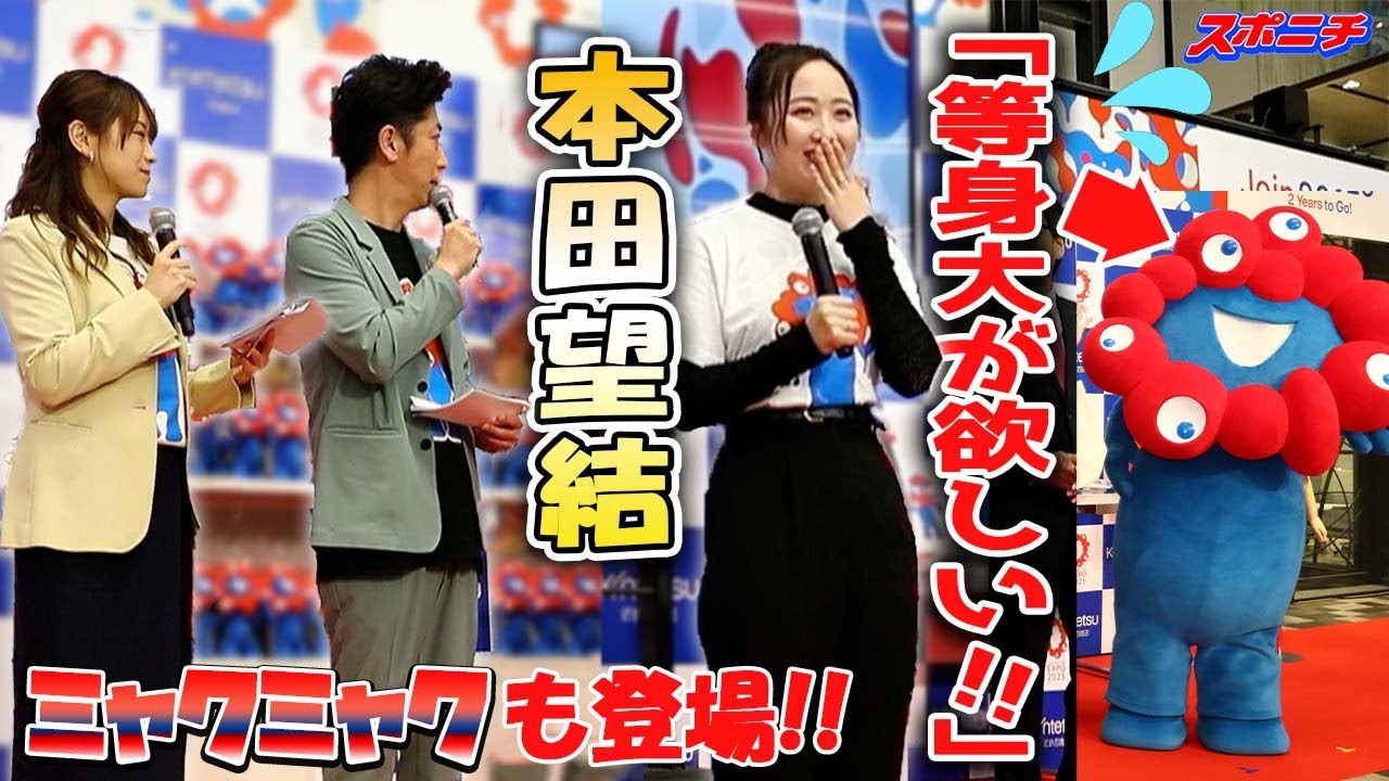 女優でフィギュアスケーターの本田望結(18)が12日、大阪・天王寺の「あべのハルカス近鉄本店」で、2025年大阪・関西万博の公式キャラクター・ミャクミャクの公式グッズ発売記念イベントに出席。ミャクミャクの23・5センチのぬいぐるみを手に「等身大のぬいぐるみがほしい。どうにかならないですか」とムチャぶりして笑いを誘った。