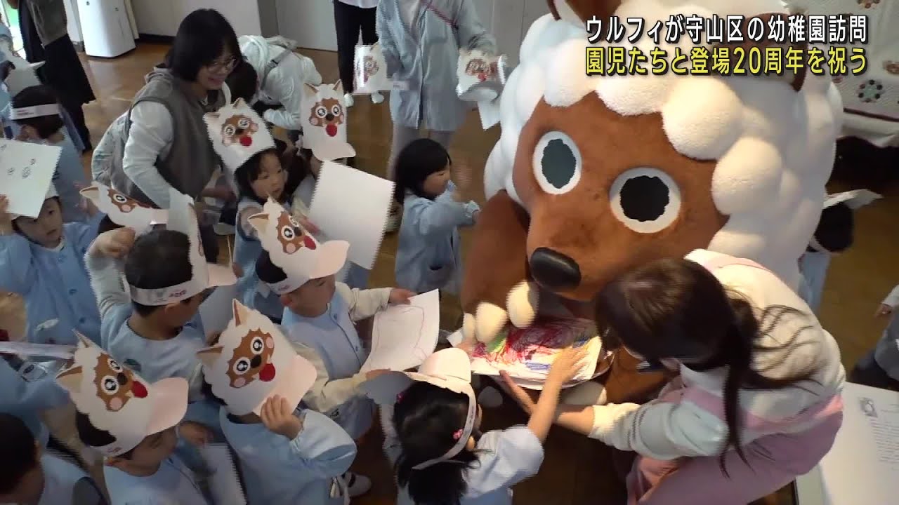 18日はウルフィと望木聡子アナウンサーが守山区の二城幼稚園を訪れ園児たちとともに、2003年に登場したウルフィの20周年パーティーを開きました。