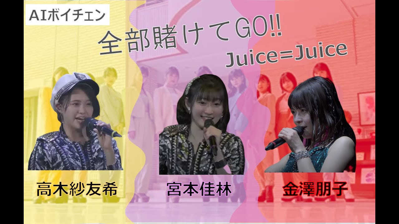 AI音声合成技術を使って、高木紗友希 宮本佳林 金澤朋子がJuice=Juiceの16thシングル「全部賭けてGO!!」を歌ってみた動画です。