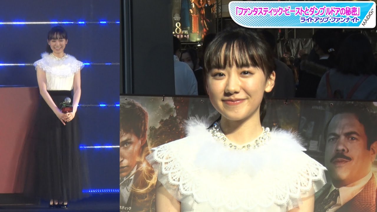 女優の芦田愛菜さんがこのほど、東京都内で行われた映画「ファンタスティック・ビーストとダンブルドアの秘密」ライトアップ・ファンナイトに、俳優の小関裕太さんらとともに登場した。