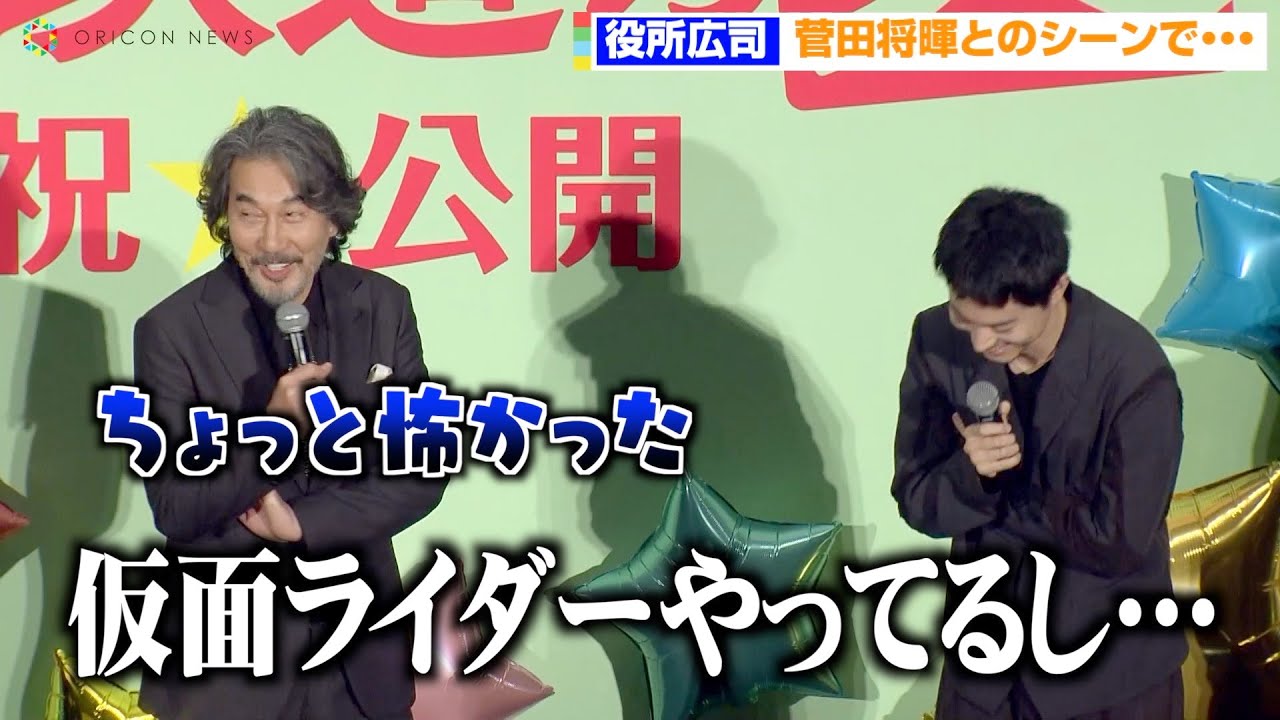 この意外な告白に、菅田は膝に手をついて笑いをこらえながら、「でも、役所さんは冷静でしたよ?僕らのことも落ち着かせてくれて」と撮影当時の様子を伝えた。