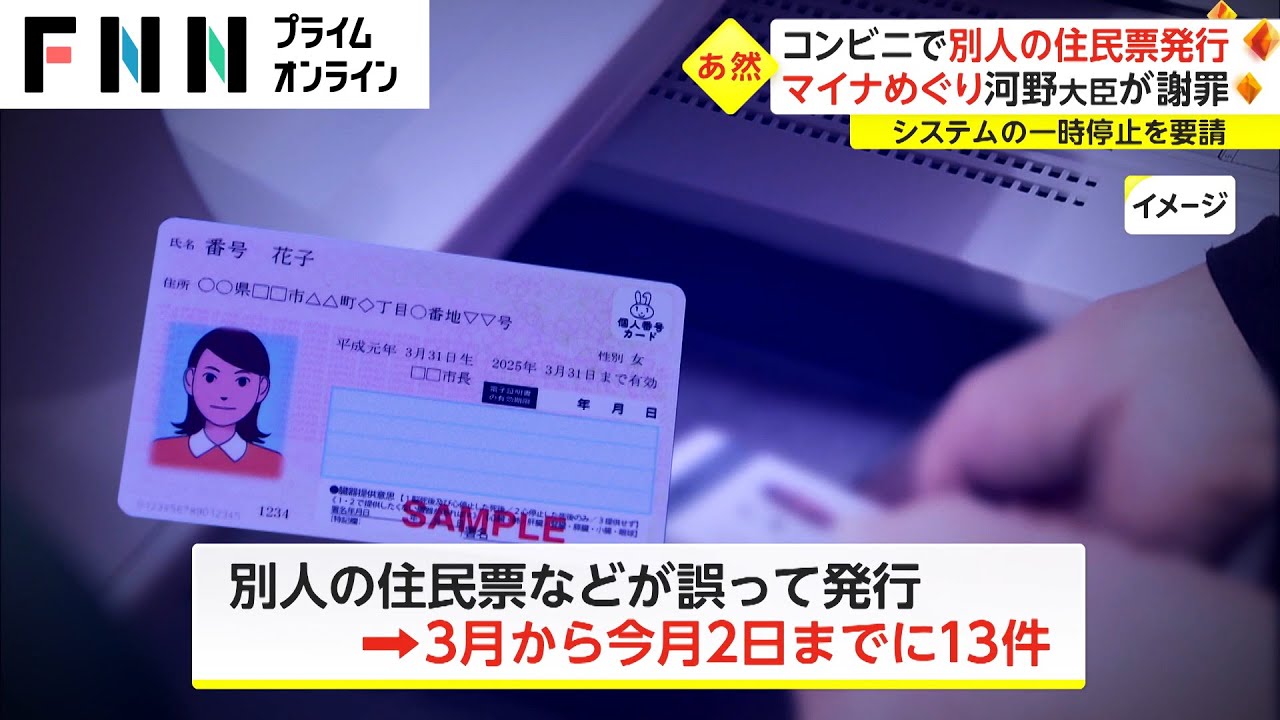 コンビニで別人の住民票発行 マイナめぐり河野大臣が謝罪 システムの一時停止を要請