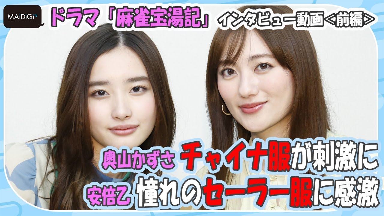 配信ドラマ「麻雀宝湯記 石和の亀篇・伊東の黒豹篇」でダブル主演を務める女優の安倍乙さんと奥山かずささんのインタビュー動画の前編が2月14日、MAiDiGiTVで公開された。安倍さんと奥山さん演じる女性雀士2人が、温泉地を舞台に極悪雀士たちと奇想天外なマージャンバトルを繰り広げる作品で、インタビューでは、それぞれの個性的すぎるキャラクターについてや、役衣装のセーラー服やチャイナ服の感想などを語っている。