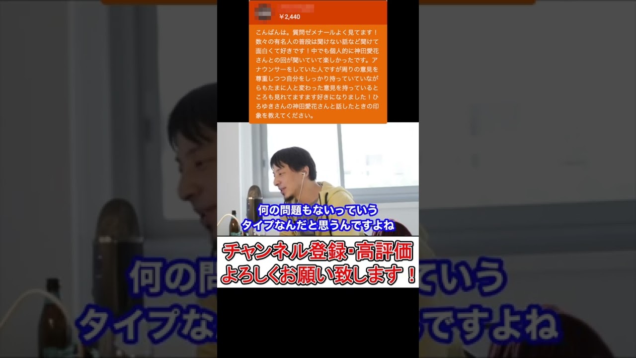 【ひろゆき】神田愛花さんと対談した時の印象を教えてください。【切り抜き ひろゆき切り抜き 質問ゼメナール アナウンサー フリー 結婚】#Short