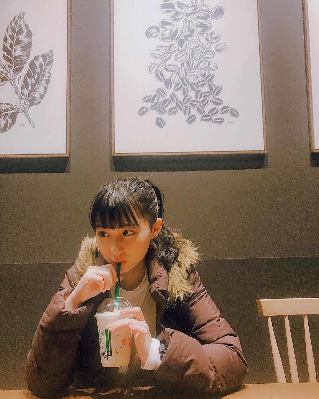 🥛 #スタバ #新作 #ホワイトチョコレート🍫 甘くてやばたにえん。美味しい! あと、ショートケーキのもまだ売ってあってホットバージョンのが好きかもです!(今更)みんなは飲んだ? #miku_tanaka#田中美久Miku TanakaTanaka Mikuスタバホワイトチョコレート🍫新作