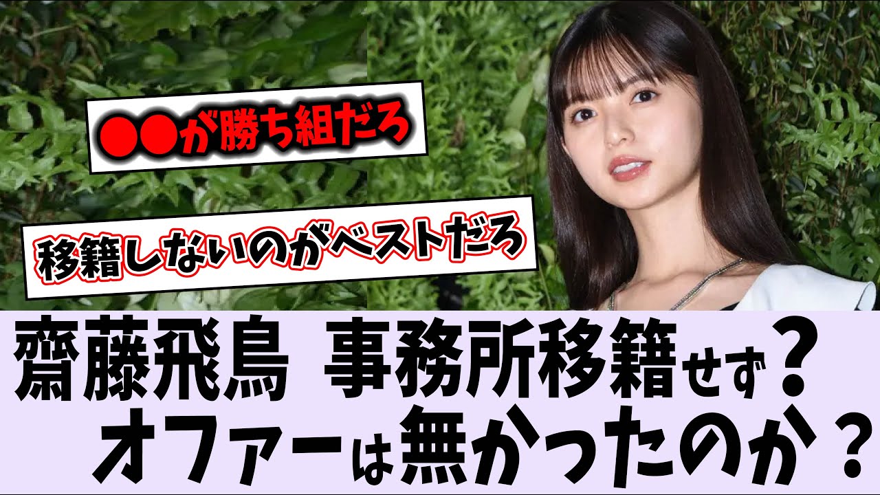 齋藤飛鳥、卒業後も事務所は変わらず活動する模様【乃木坂46】 #秋元真夏#齋藤飛鳥#白石麻衣 #乃木坂#乃木坂46#showroom#乃木坂工事中#のぎおび#猫舌showroom#乃木坂どこへ #バナナマン#設楽#日村 ご視聴ありがとうございました! このチャンネルでは、乃木坂46のニュースと切り抜きを投稿しています。 ファンの方はチャンネル登録して、ぜひチェックしてみてください! idolアイドルオールナイトニッポン乃木坂久保史緒里嘉喜遥香山下美月秋元真夏遠藤さくら齋藤飛鳥 Write A Commentコメントを投稿するにはログインしてください。