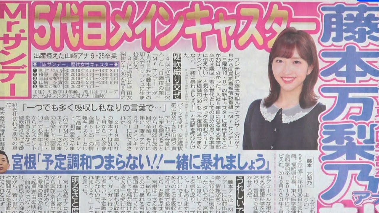 藤本万梨乃アナがMサンデー就任でコメントです。