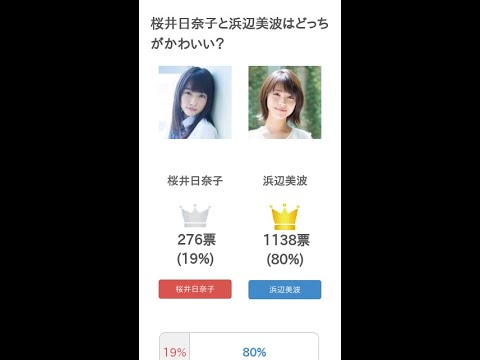 #桜井日奈子 と #浜辺美波 はどっちが #かわいい?というテーマの投票結果です。