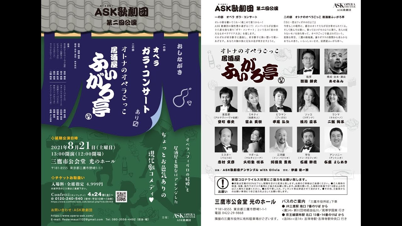 ASK歌劇団第二回公演「居酒屋ふぃがろ亭」のPVです。当公演、第一部はオペラ・ガラコンサート、第二部は当団オリジナル脚本による オトナのオペラごっこ「居酒屋ふぃがろ亭」の二部構成でお送りします。他では決して観ることのできない「居酒屋ふぃがろ亭」、是非ご覧ください!