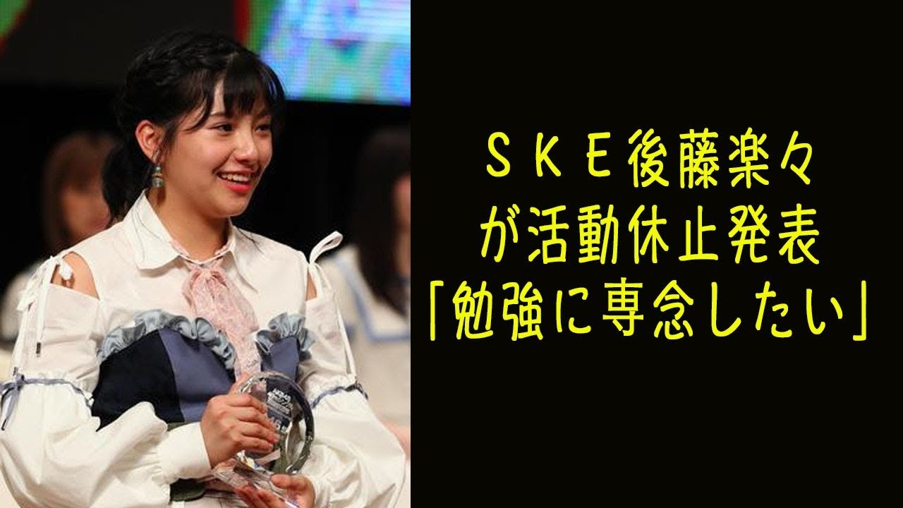 SKE48後藤楽々(17)が、学業専念のため5月1日からグループでの活動休止することを29日、握手会イベントで発表した。