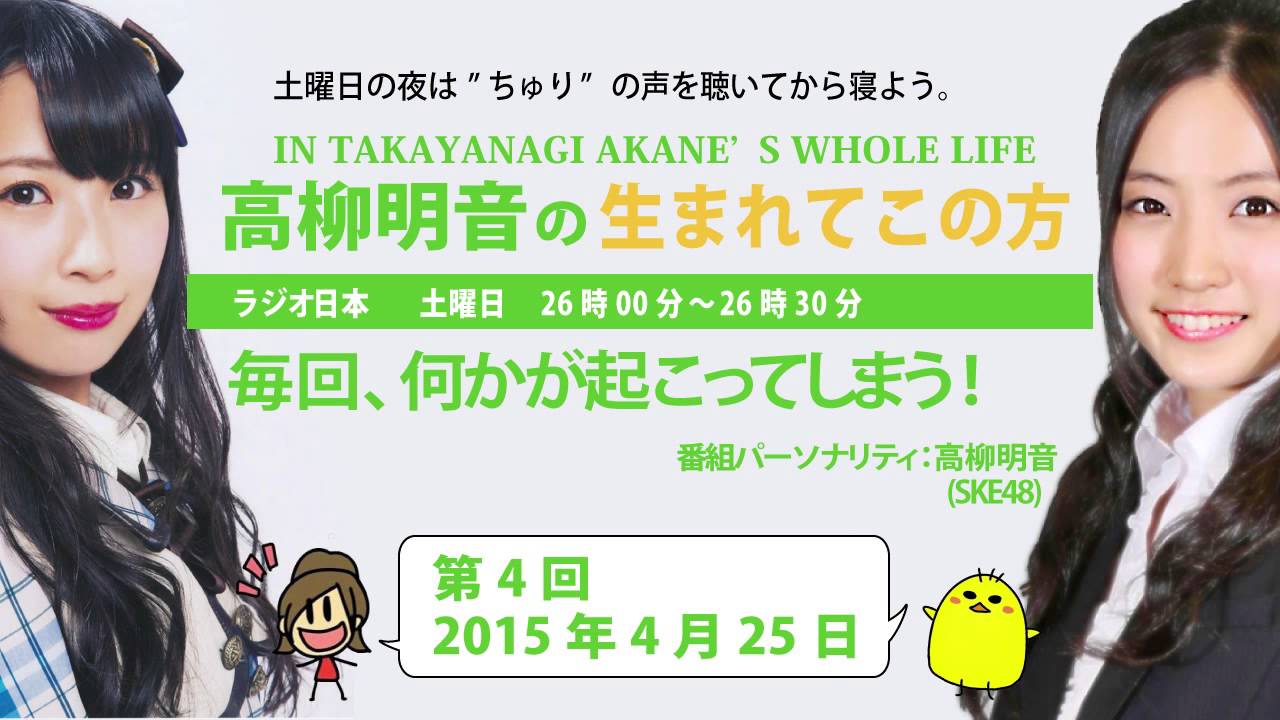 【2015年4月25日】高柳明音の生まれてこの方 パーソナリティ:高柳明音 ゲスト:古川愛李 idolSKE48 (Musical Group)アイドル高柳明音 Write A Commentコメントを投稿するにはログインしてください。