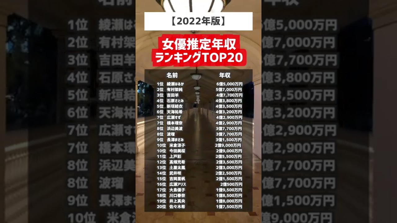 【2022年版】女優年収ランキングTOP20 #shorts