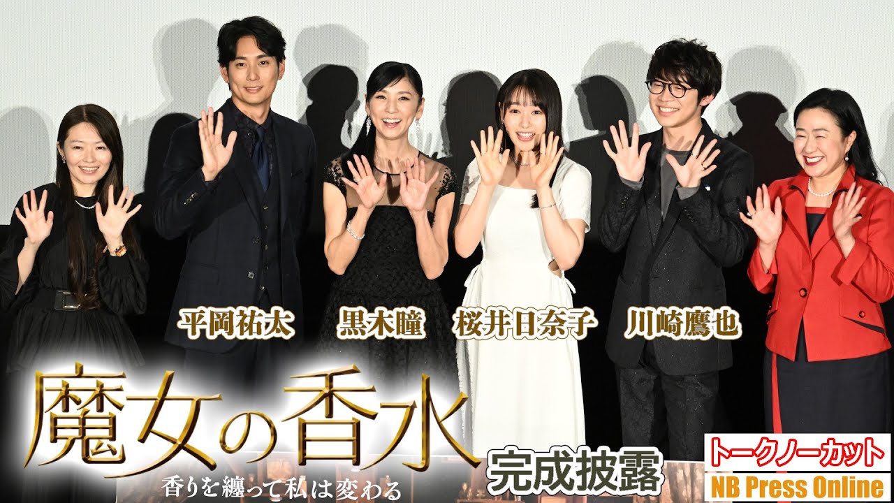 (見どころ頭出しあり)2023年6月8日、TOHOシネマズ 六本木ヒルズにて、映画『魔女の香水』完成披露舞台挨拶が行われ、黒木瞳、桜井日奈子、平岡祐太、川崎鷹也、宮武由衣監督、菅原智美(製作統括)が登壇した。