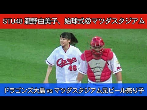 20180808 STU48 瀧野由美子、始球式@マツダスタジアム。ドアラ & スライリーに見守られながら中日ドラゴンズ・大島洋平と対戦!