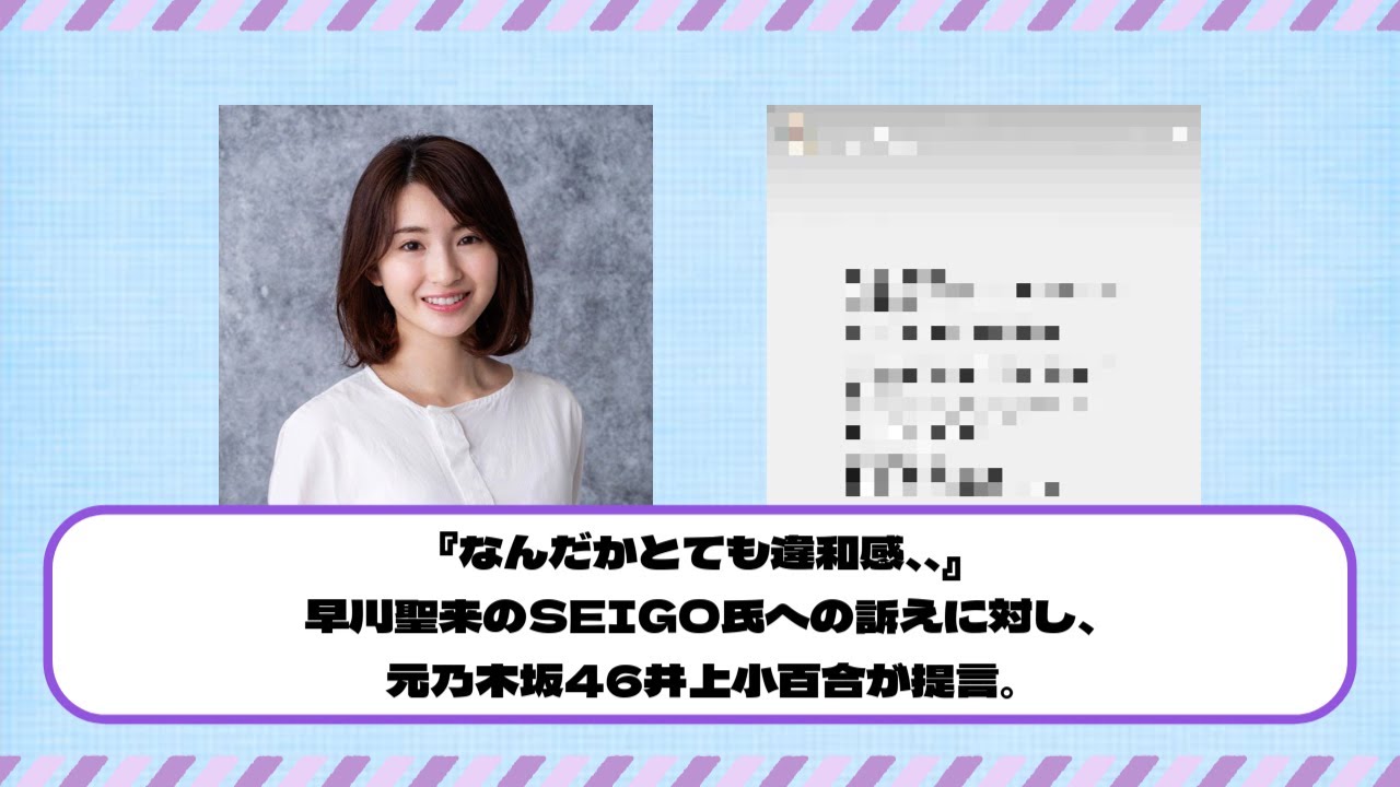 『なんだかとても違和感、、』早川聖来のSEIGO氏への訴えに対し、元乃木坂46井上小百合が言及。反応まとめ
