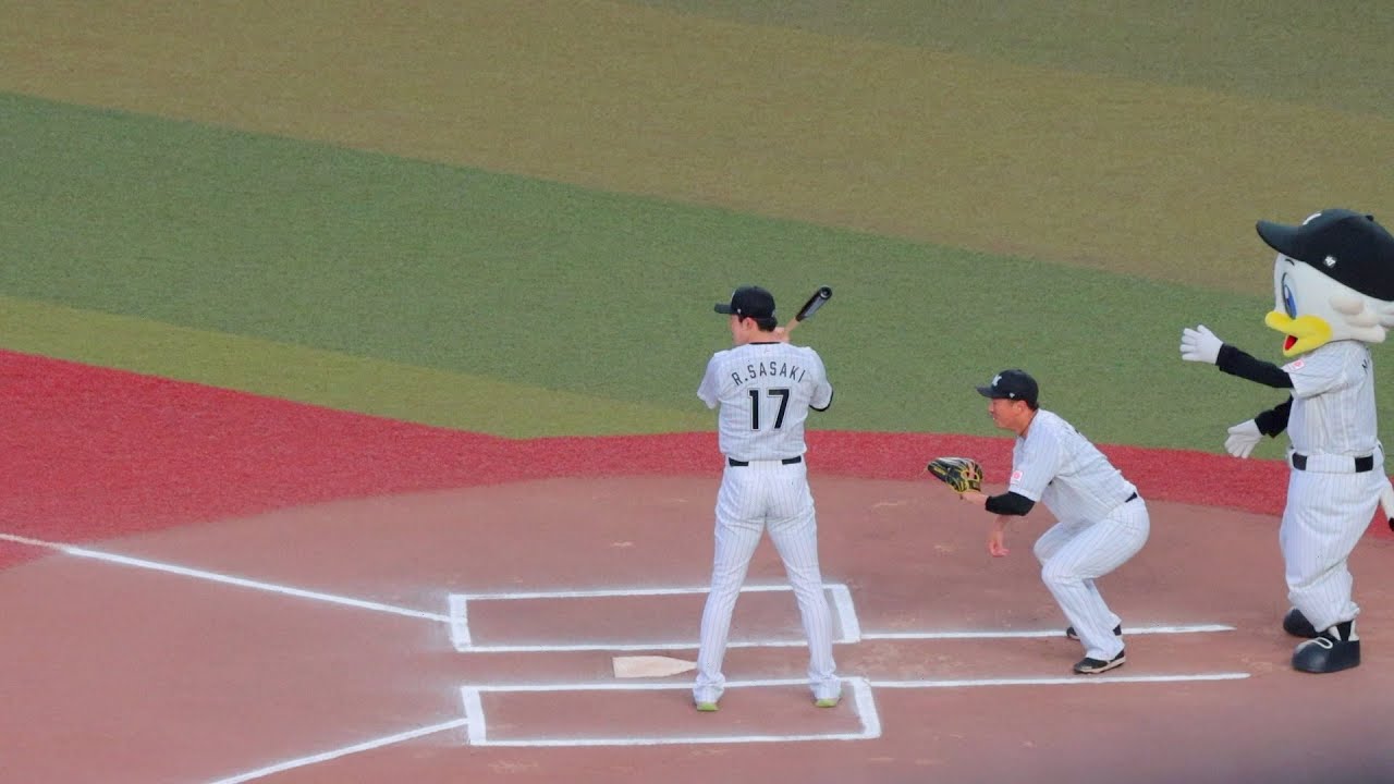 佐々木朗希、始球式の打席にしれっと登場するもファンにあまり気付かれない【ロッテ】