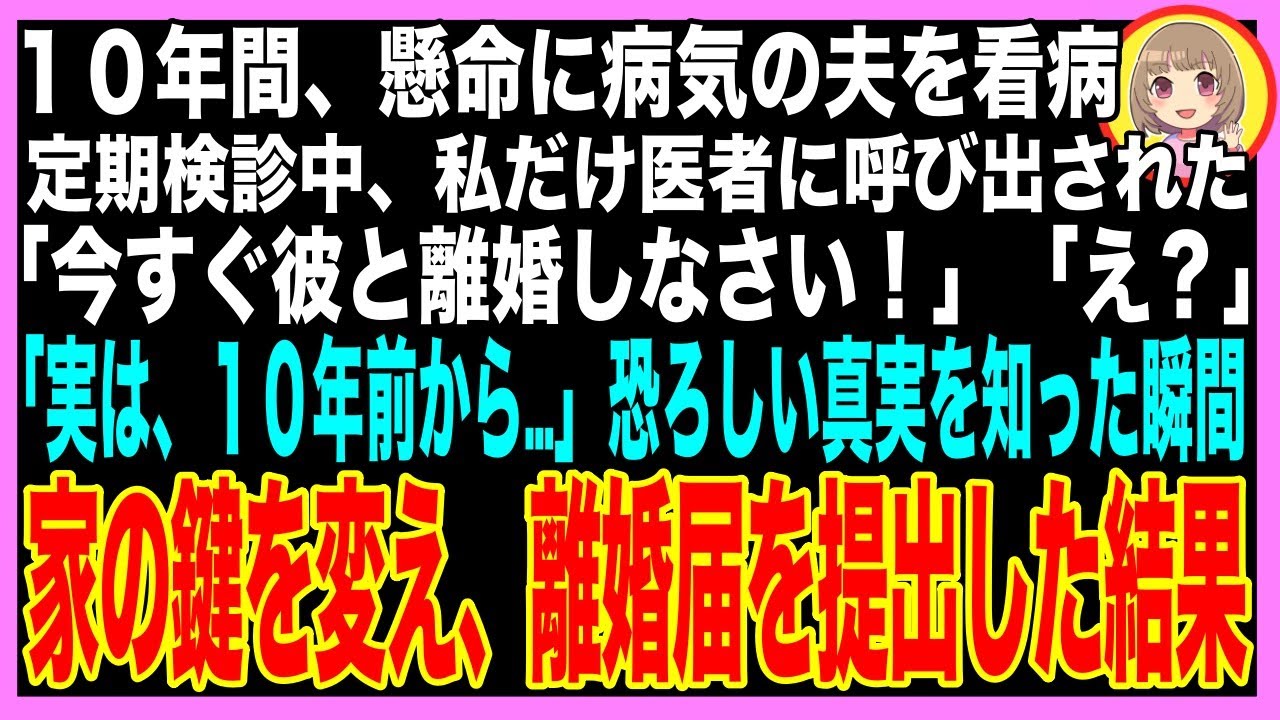 【スカッと】病気で虚ろな夫をつれて定期検診に行くと、私だけ別室に呼ばれた→医者「旦那さんとは今すぐ離婚しなさい!」私「え?なんで?」監視カメラの画面を見せられると、真っ裸の夫が映っていて…(朗読)