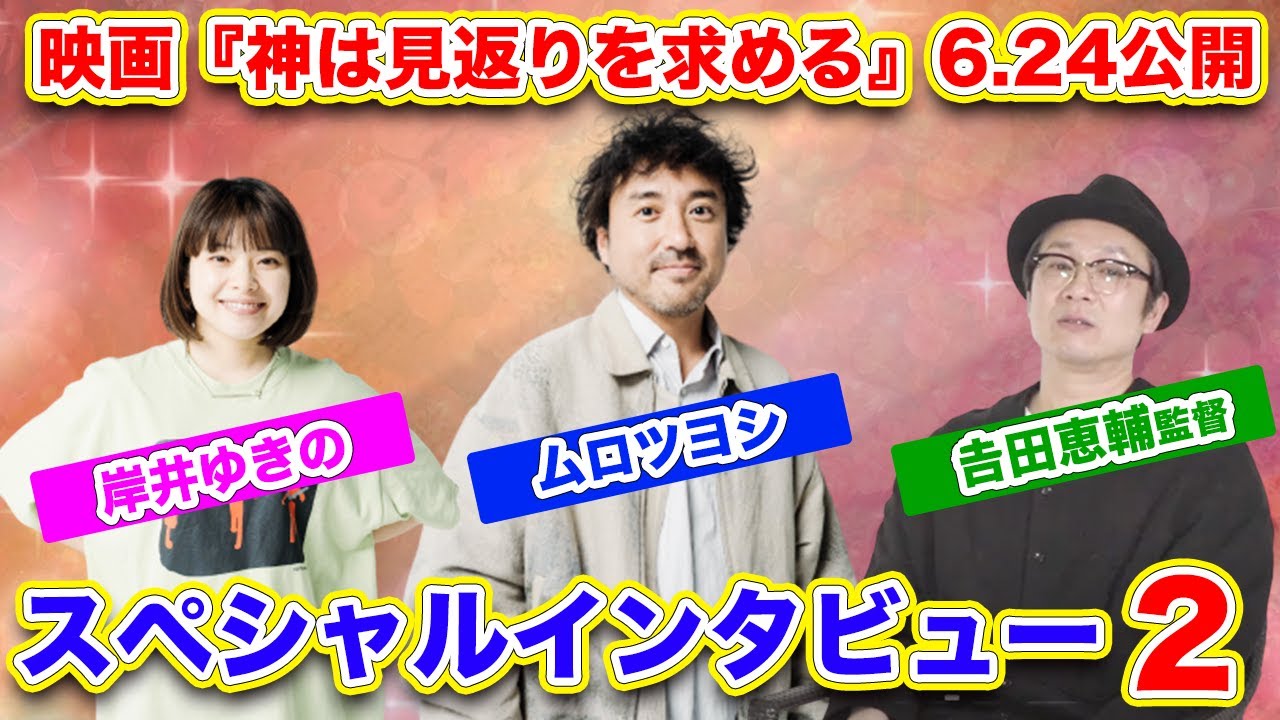 映画『神は見返りを求める』6.24公開!ムロツヨシ×岸井ゆきの×𠮷田恵輔監督スペシャルインタビュー2 〜見返りを求めてやったことは?〜