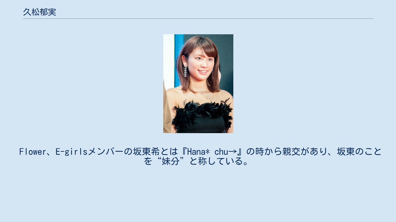 Flower、E-girlsメンバーの坂東希とは『Hana* chu→』の時から親交があり、坂東のことを“妹分”と称している。