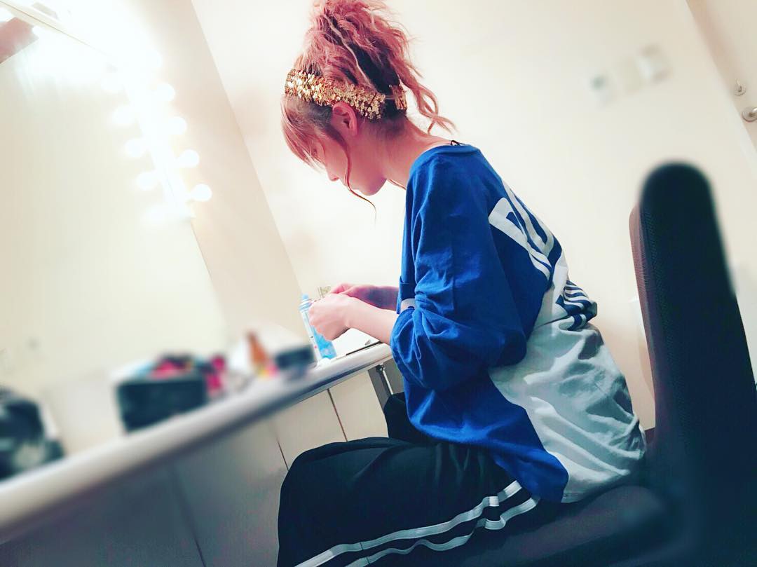 . 4/17ライブ前支度する私♡💄✨ ✽+†+✽――✽+†+✽――✽+†+✽―― #メイク#ヘアセット #オフショット #楽屋 #reina_tanakaReina TanakaTanaka Reinaオフショットヘアセットメイク楽屋田中れいな