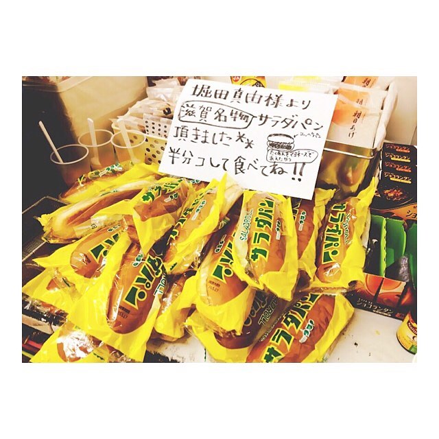 滋賀の名物であるサラダパンと共に撮影へ。 好評で嬉しい限り✨ ちなみに私。。サラダパンTシャツ持ってます(笑) #滋賀名物 #つるやパン #サラダパン #中身は #たくあん #マヨネーズ #やみつき #mayu_hotta#堀田真由Hotta MayuMayu Hottaサラダパンたくあんつるやパンマヨネーズやみつき中身は滋賀名物