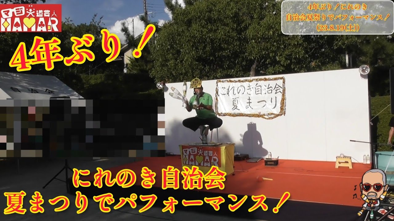 4年ぶりのご依頼!にれのき自治会夏まつり でパフォーマンス!(京都市) マジ大道芸人HAMAR