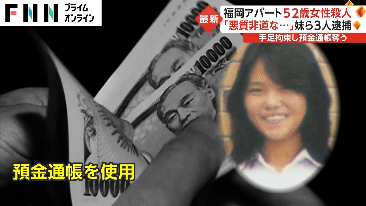 「極めて悪質非道な犯行」福岡アパート女性殺人 妹ら女3人逮捕…手足縛って預金通帳奪い73万円詐取