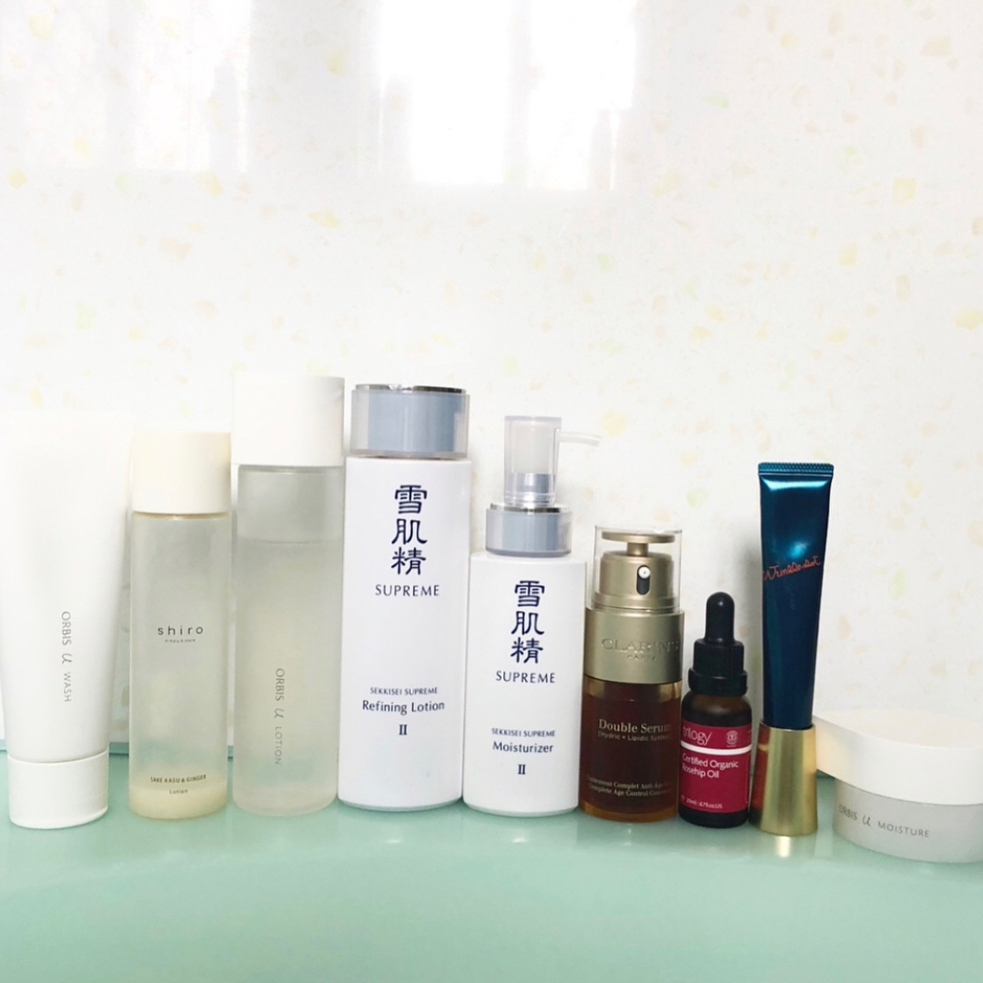 帰省中は東京からスキンケアコスメを厳選して持ってきています✨(あれ、厳選したのに結構多いぞ🙄笑)