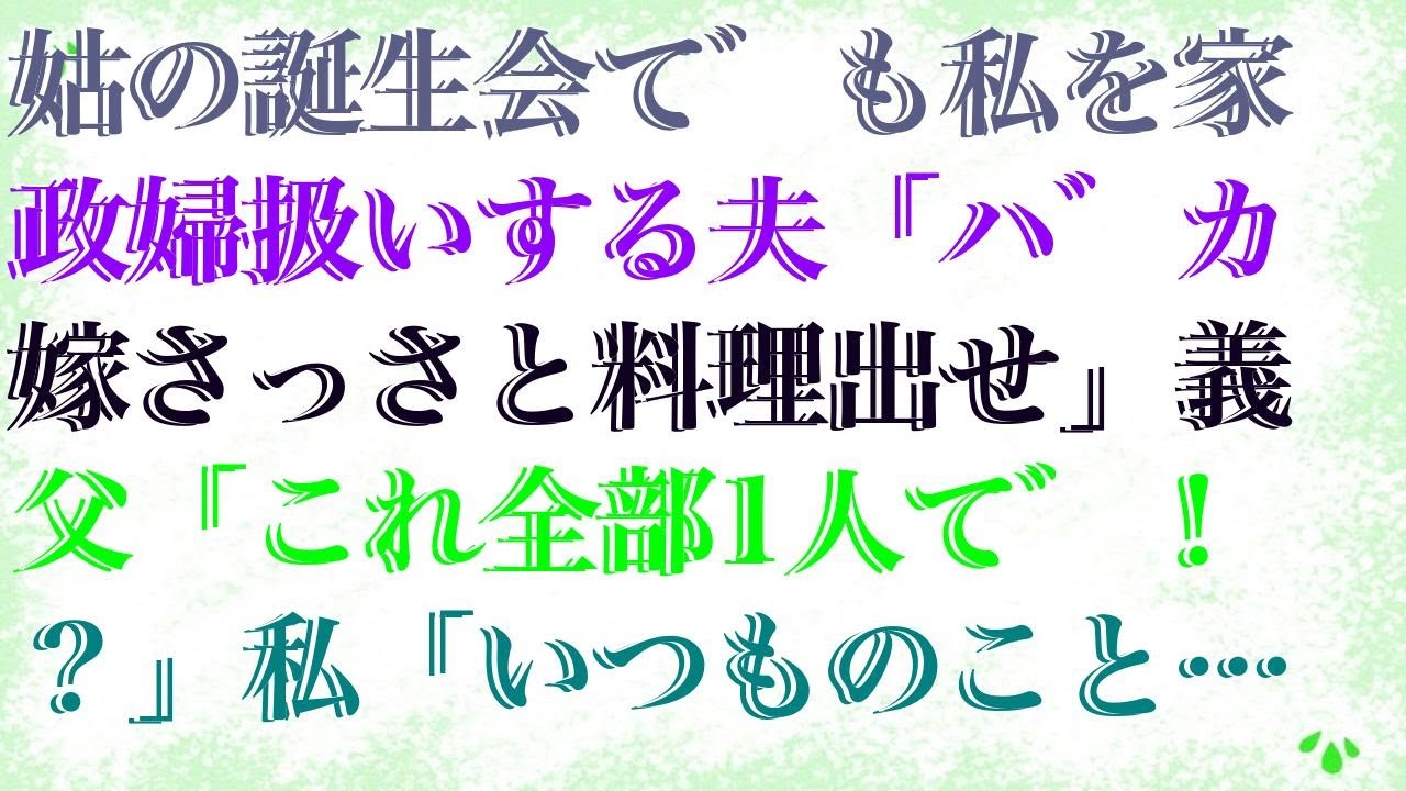 【修羅場】 姑の誕生会でも私を家政婦扱いする夫「バカ嫁さっさと料理出せ」義父「これ全部1人で!?」私「いつものことですから…」すると義父が豹変し…