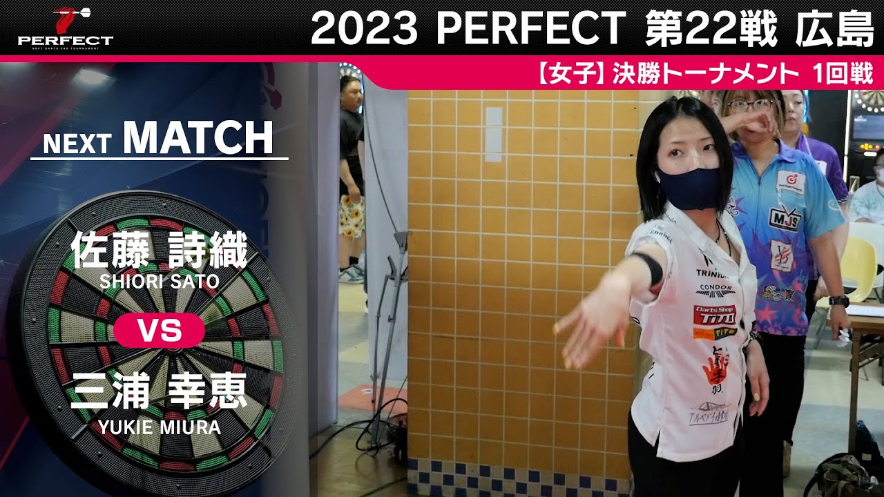 プロソフトダーツトーナメント “2023 PERFECTツアー”第22戦 広島 女子1回戦、佐藤詩織 vs 三浦幸恵の試合動画です。