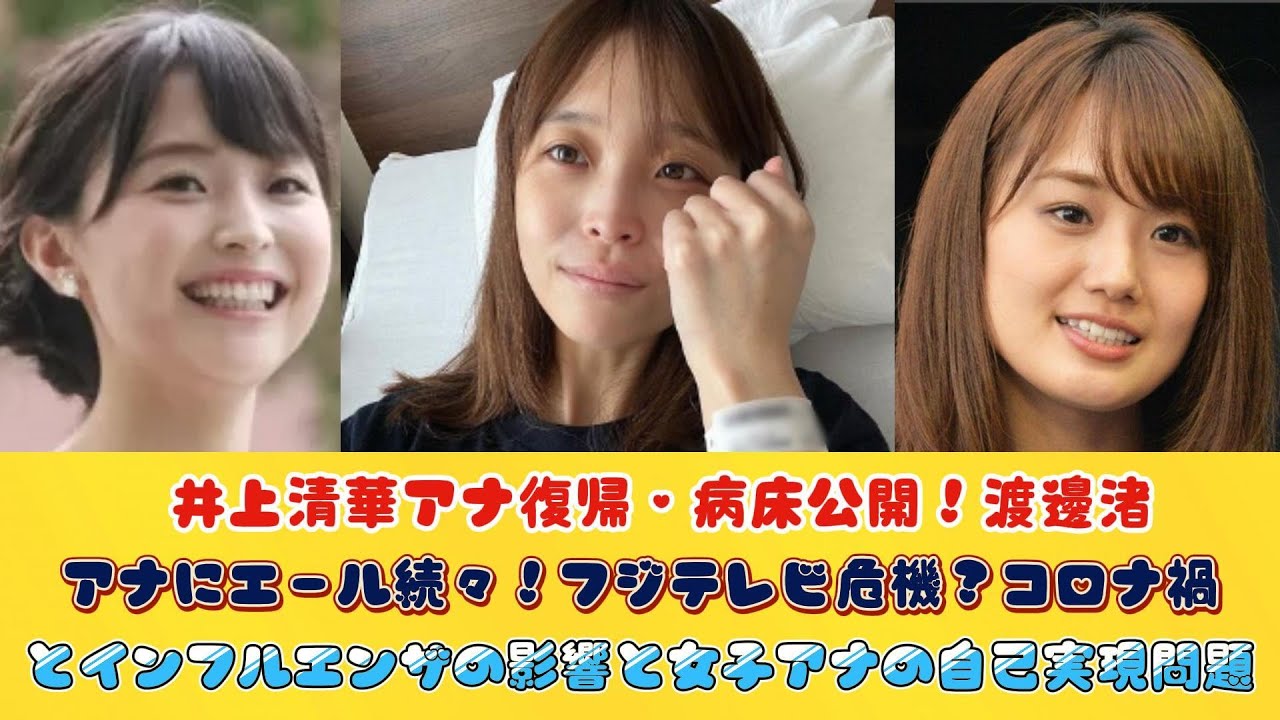 井上清華アナ復帰・病床公開!渡邊渚アナにエール続々!フジテレビ危機?コロナ禍とインフルエンザの影響と女子アナの自己実現問題