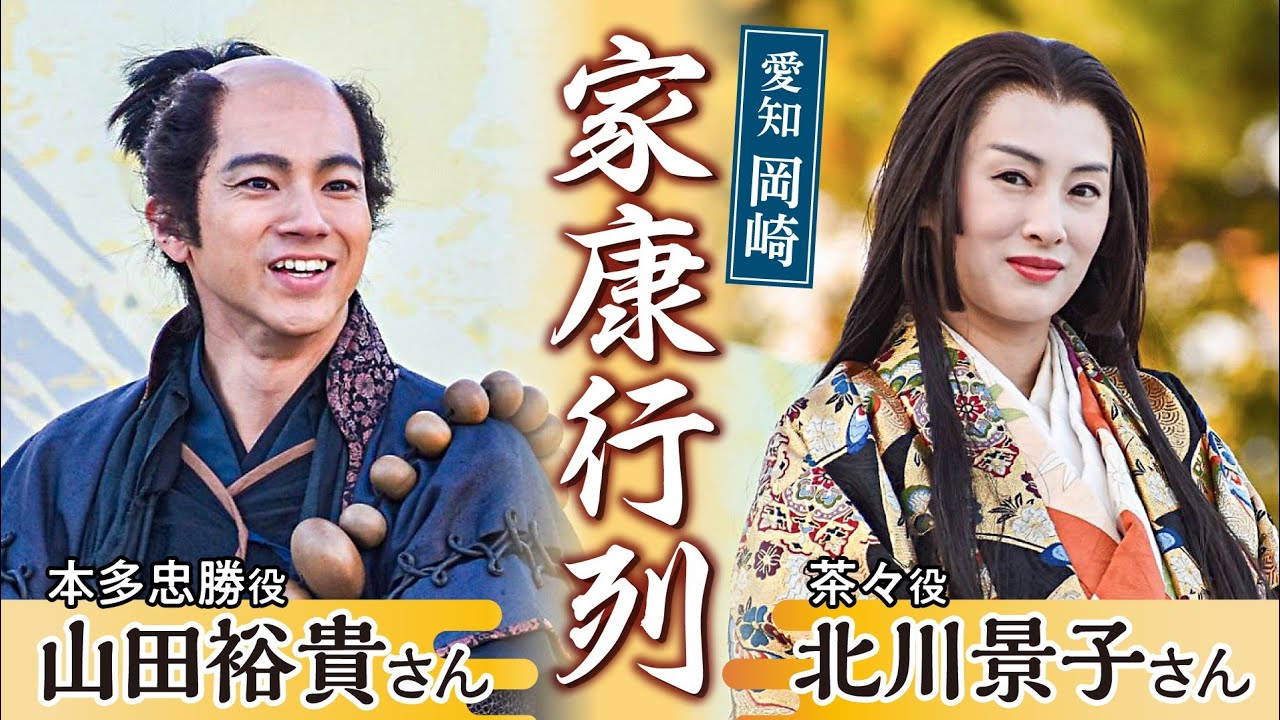 【4K】「どうする家康」出演の北川景子さん、山田裕貴さんら登場 愛知・岡崎市の家康行列
