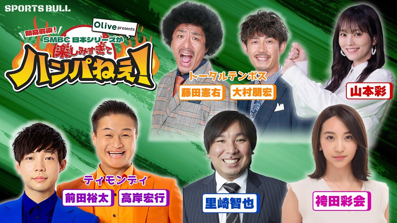 #スポーツブル #日本シリーズ #Olive #SMBC #里崎智也 #山本彩 #トータルテンボス #藤田憲右 #大村朋宏 #ティモンディ #前田裕太 #高岸宏行 #袴田彩会 #元プロ野球選手 #sports #live