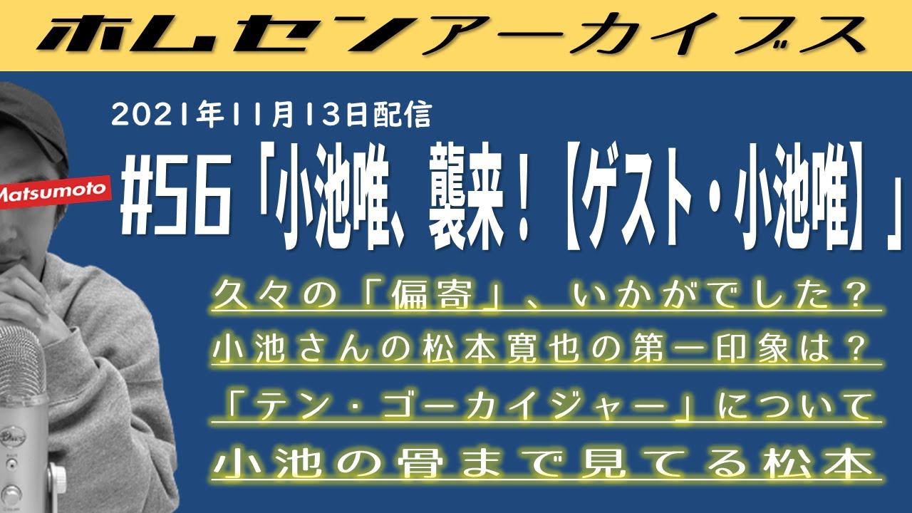 【小池唯】#56 (ゲスト:小池唯)小池唯、襲来!「テン・ゴーカイジャー」の話もたっぷりと!【ゴーカイピンク】 ▼クイズで寛也さんの疑問が明らかに… ▼久々の「偏寄」、いかがでしたか? ▼ゲストに小池唯さん登場! ▼松本寛也の第一印象は… ▼望月チルドレンの2人 ▼「テン・ゴーカイジャー」、どうでした? ▼変身講座撮影の裏側 ▼舞台挨拶すごかった! ▼小池の骨まで見てる松本 ▼流行語大賞ダービー2021開催決定! actressゴーカイジャーホームセンター松本女優小池唯松本寛也 Write A Commentコメントを投稿するにはログインしてください。